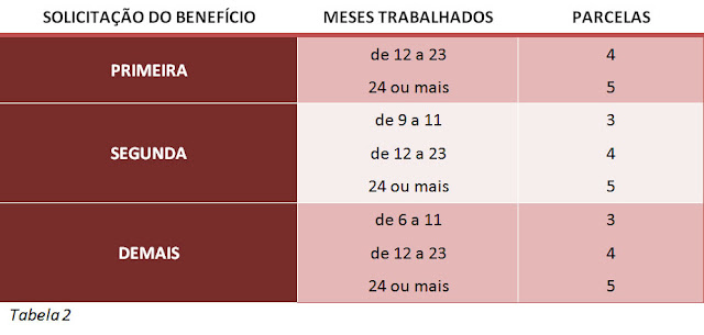 A regra quanto à quantidade de parcelas mudou bastante. O trabalhador receberá de 3 a 5 parcelas conforme o quadro a seguir: